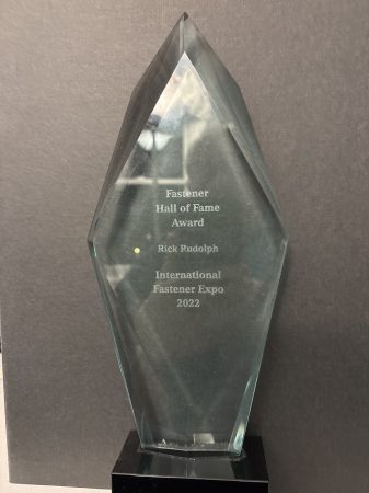 Above: Fastener Industry Hall of Famer Rick Rudolph, pictured with son, Captain Morgan Rudolph, on the greens.